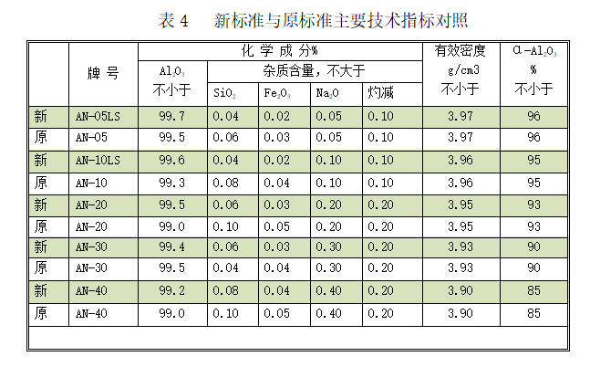 增加了ɑ-Al2O3含量、比表面、松密度等型式檢驗(yàn)要求。